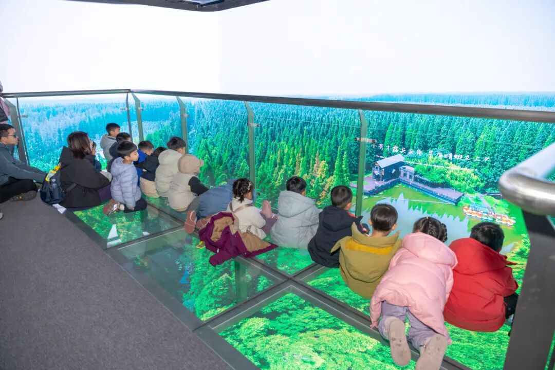 穿越四季光影,沉浸森林奇幻。在黄海森林的CAVE沉浸式影院,孩子们迎来了一场震撼的视听之旅。立体画面将森林的四季变幻徐徐展开,春的嫩绿、夏的繁茂、秋的金黄、冬的静谧,立体呈现在眼前。孩子们仿佛穿越时空,身临其境地感受自然的脉动与魅力,惊叹声此起彼伏。