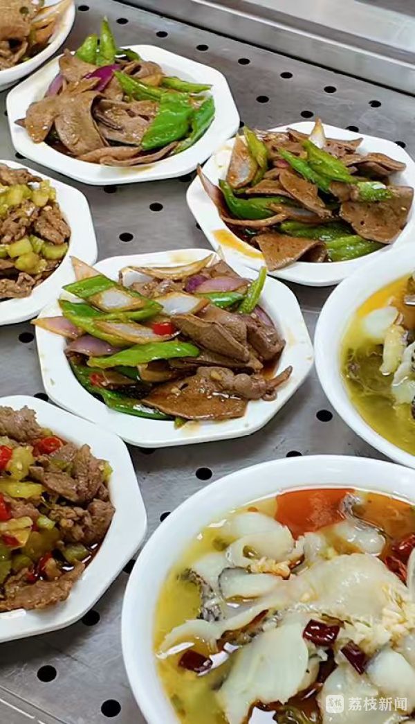 曹女士告诉记者:“今天开业第一天我们就过来了。价格比较便宜,食物也很丰富,可以一次性吃到很多菜。小孩子在这里吃饭干净放心,比在外面吃要放心得多。”