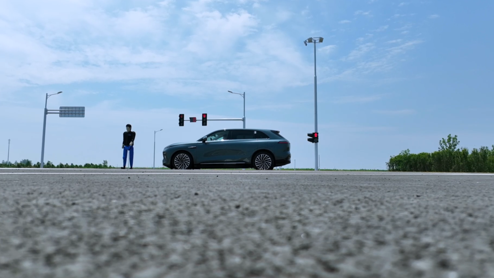 记者随后体验了电影中惊艳观众的湿操控测试路。“路面看着湿漉漉的,不是随便洒水,水膜厚度严格控制在1毫米,误差不超过0.5毫米。”中汽股份场地运营工程师陈海建介绍,全长2公里的路段,均匀布设700多个与路面齐平的喷头,只为精准模拟雨天最真实的湿滑场景。