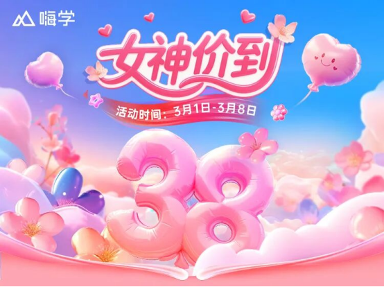 春回大地,万物复苏。在2026年开年之际,伴随着“3·8”国际妇女节的到来,在线职业能力培训企业嗨学网于3月1日至3月8日期间,推出以“女神价到”为主题的大型优惠活动。活动旨在为新一年的学员提供更丰富的学习体验与服务,助力广大职业人士,尤其是女性学员,实现职业价值的进一步提升。