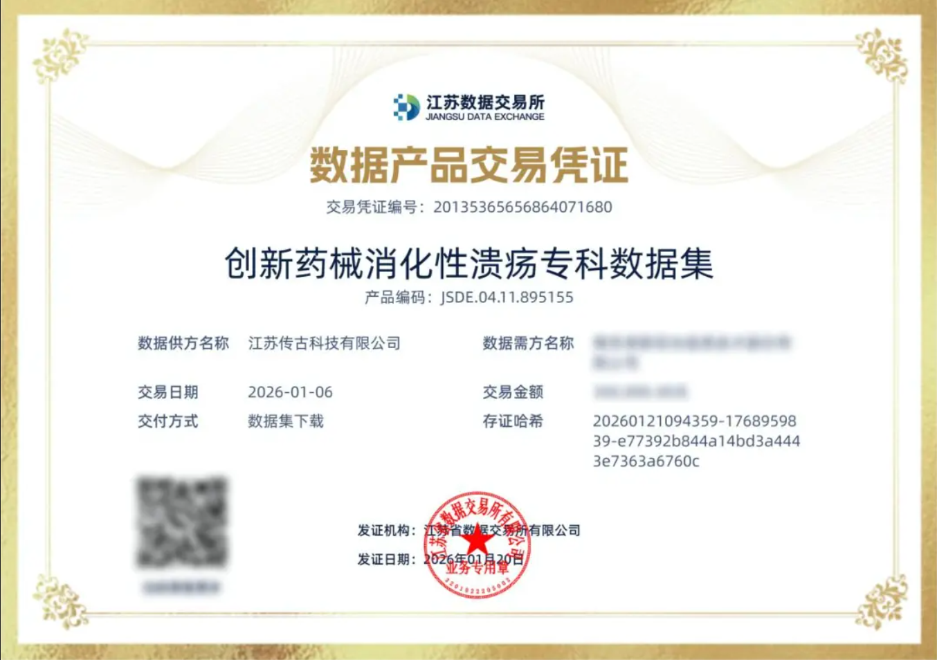“这是区域医疗数据价值转化的‘开门红’。”传世博润总裁、江苏传古董事长常胜说,数据要素价值化转化难点在“最后一公里”,对需求的精准落实。“每个需求具体到单个企业、单个医疗机构,都存在非常大的差异。”常胜说,传世与需求方梳理实际需求,基于其业务场景共同设计数据集标准,形成对供给方的“有效订单”。再携手供给方,通过治理、标注、计算等综合解决方案,构建满足订单的数据产品。