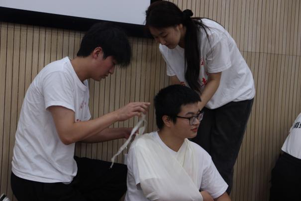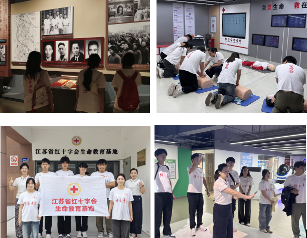 党建铸魂,凝聚青春志愿合力。学校构建“党委统筹、团委牵头、支部联动、党员领衔”的红色育人体系,让党建引领贯穿志愿服务全过程。组建由党员学生骨干、“青马工程”学员、思政专业教师组成的指导团队,开设“红十字精神+思政教育”专题培训46场,培养400余名持初级救护员证书志愿者,形成“一名党员带一支队伍、一个支部领一个项目”的联动机制。近四年,累计招募志愿者1200余人次,服务时长突破2.8万小时,足迹遍布南京6个社区、8条地铁线及多个文化场馆,让党旗在志愿服务一线高高飘扬,让红色基因融入青春血脉。