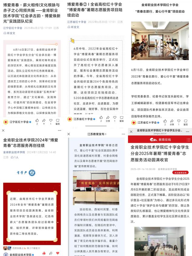 从社区帮扶到文化传承,从应急救护到健康科普,金肯职业技术学院“博爱青春”志愿服务品牌,是民办高校落实立德树人根本任务的创新实践,也是党建引领基层治理、服务社会发展的生动缩影。近四年,品牌累计斩获1项省级、3项市级支持项目,2023-2025年连续三年成为民办高职唯一入选市级项目支持的院校,这份亮眼成绩已辐射至学科建设、人才培养、社会服务等领域,为学校高质量发展注入精神动能。