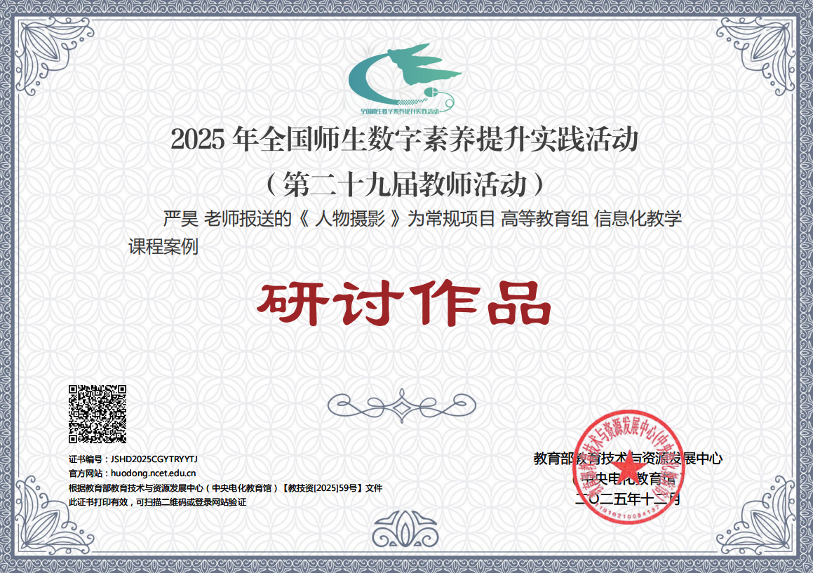 55门校级优质课程、5门省级在线精品课程顺利结项;35门课程入驻智慧职教平台;25门课程获评校级课程思政示范课,实现价值塑造、知识传授、能力培养“三链融合”;信息化教学课程案例《人物摄影》被教育部教育技术与资源发展中心评为全国师生数字素养提升实践活动研讨作品。