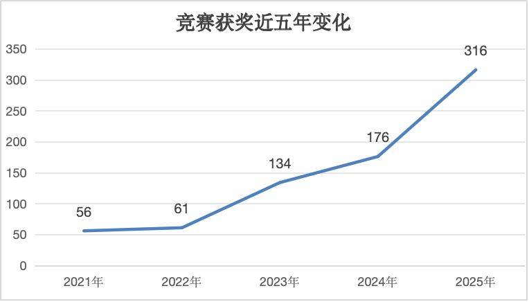 教师教学能力竞赛斩获国家级奖项25项、省级奖项16项;指导学生获得省级以上技能竞赛奖项275项,其中一等奖33项,年度竞赛获奖总量达316项。