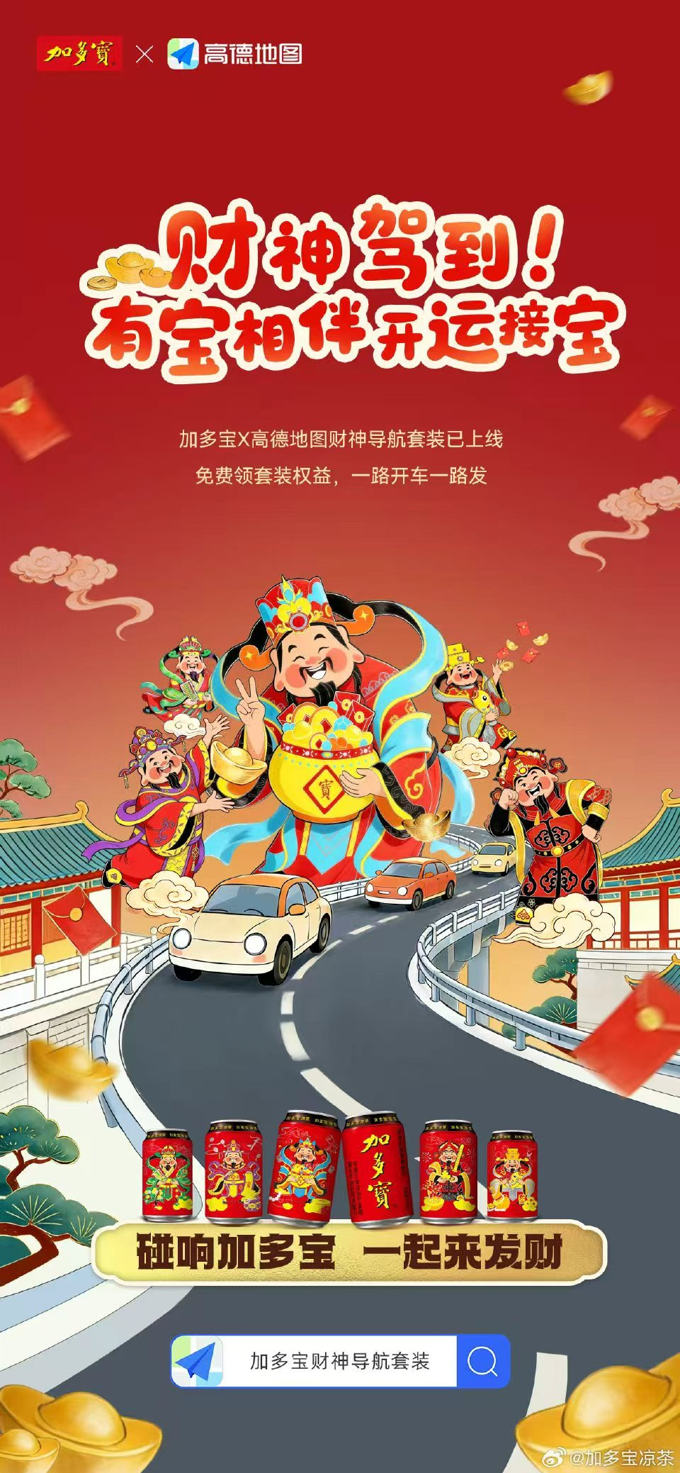 在场景拓展上,加多宝与高德地图跨界合作,春节期间上线加多宝财神罐导航语音包,将品牌元素融入日常出行场景,让消费者在返乡、访友途中,时刻感受 “招财进宝” 的新春氛围。