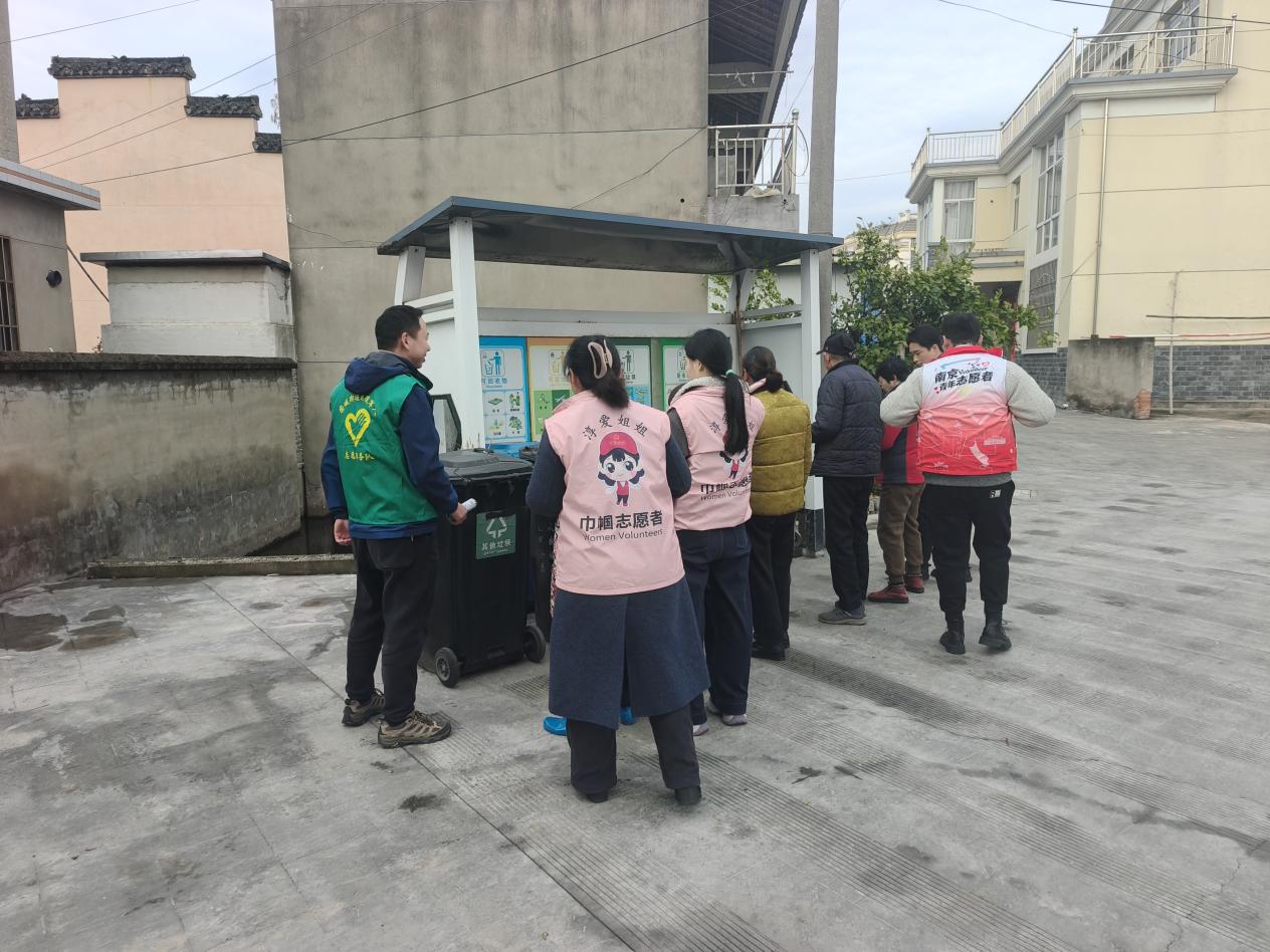 活动中,志愿者们身穿红马甲,深入各垃圾分类投放点进行“桶边值守”。他们耐心指导村民正确分类投放垃圾,及时纠正不规范行为,并细致讲解四类垃圾的区分方法与投放要求,帮助村民掌握分类技巧,引导其养成精准投放的良好习惯。