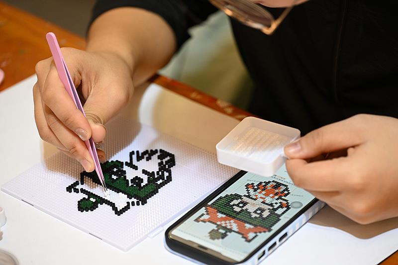 田分分说,拼豆上手并不难,最考验的就是玩家的耐心。在她看来,拼豆之所以能吸引这么多人,核心就是能让人在专注中解压,在慢下来的时光里,找到内心的平静,对孩子来说,更是锻炼专注力和耐心的好方式。
