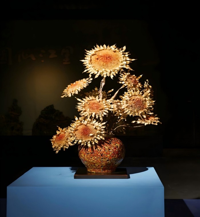 西方抽象是“无物之象”的减法,东方写意是“象外之意”的加法。我用熔铜创作《燃烧的向日葵》,与梵高对话:梵高用油彩追逐太阳,我让铜液流淌凝固,赋予花瓣生长的力量。比利时艺术学院院长说,这让世界看到了梵高《向日葵》的东方视角。