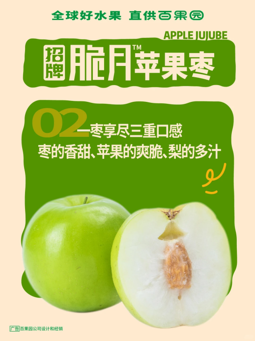 招牌脆月苹果枣则是水果界的“跨界奇才”,产自西双版纳的它,自带三重口感buff——融合枣的香甜、苹果的爽脆与梨的多汁,一口下去能尝到三种风味层次。作为枣中的“大个头”,它的果肉细嫩甜蜜,高成熟度采摘让风味更浓郁。种植过程采用绿色防虫技术,减少农药使用,还通过了298项农残检测,让年味吃得安心,吃得放心。