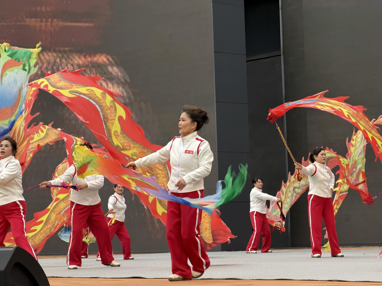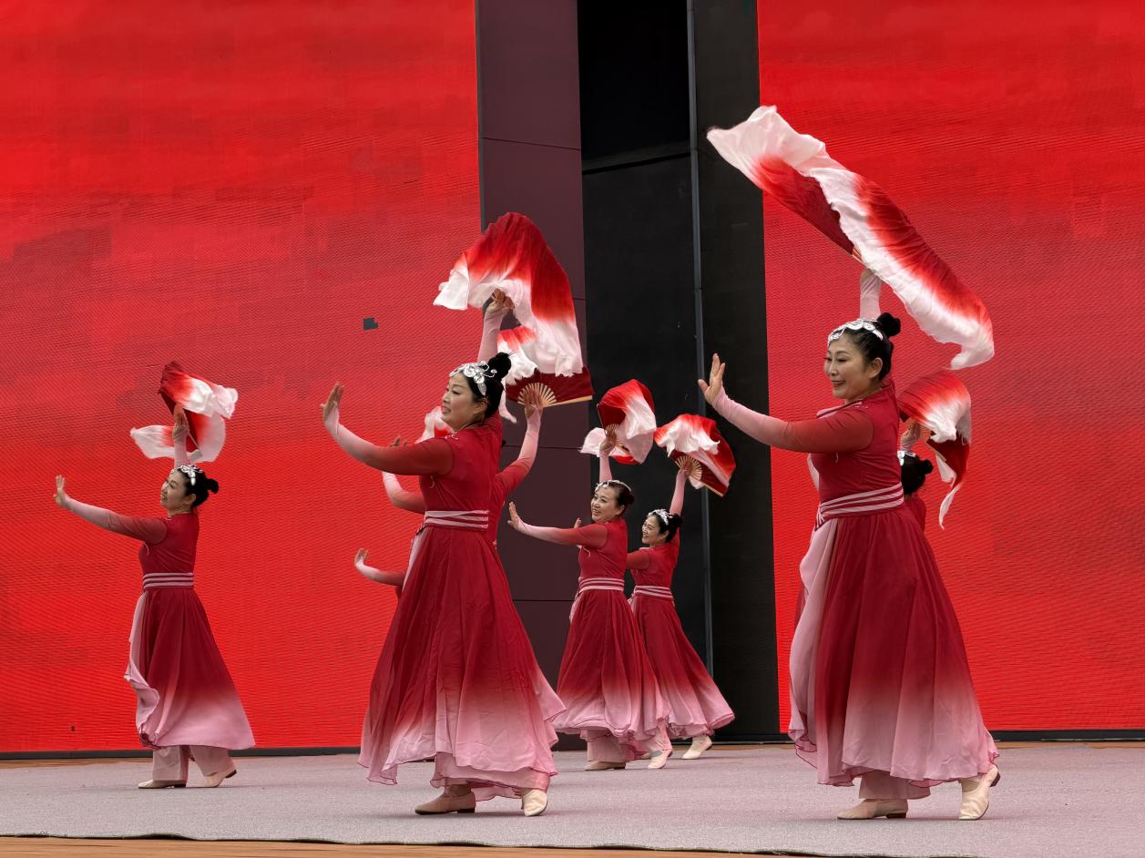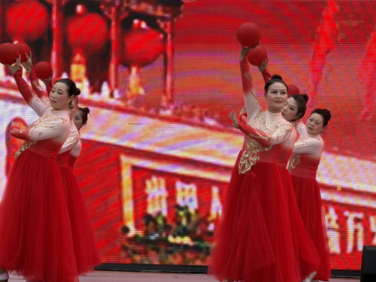 下午2时30分,一曲开场舞《红色鼓韵》把观众带入了热烈欢腾的氛围中,灵动的舞姿与明快的节奏交织,瞬间点燃全场热情。《幸福花儿开》《我和我的祖国》以大气的编排、磅礴的舞美,传递对祖国的热爱与赞美;《青春的旋律》以铿锵有力的舞步和昂扬向上的编排,配合富有张力的肢体语言,展现青春的热血与朝气,传递出青年群体积极向上的生命力;《雪龙吟》《彩龙舞东风》表现了人们对幸福生活的追求以及对新时代的美好祝愿;《我的国我的家》通过舞蹈形式表达了美好寓意,赞颂了新时代中国欣欣向荣、生机蓬勃的发展进程。