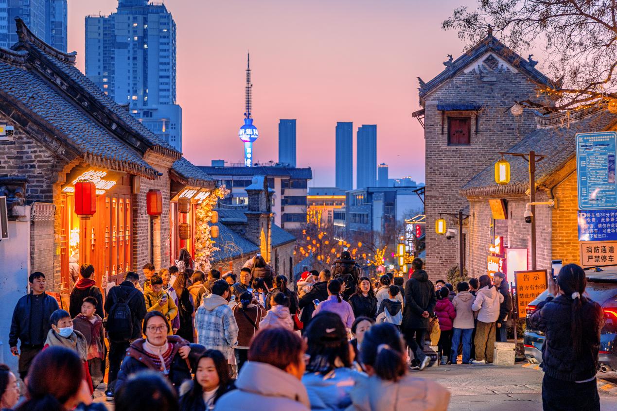 过去,由于文旅资源分布散落,且景区规模不大,让不少人感觉景点“半小时逛完”。如今,从云龙山下的下圆墩遗址,到故黄河畔的黄楼,“彭城七里”历史文化轴线将235处历史遗存一一串联,回龙窝、户部山、徐州博物馆等景点无缝衔接。这个春节,全新迎客的“彭城七里”接待游客167.8万人次,银联消费4.42亿元。