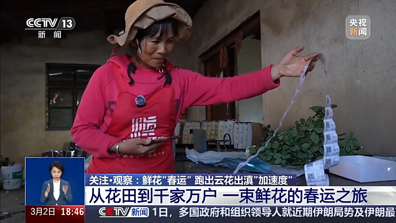 某电商平台联合创始人 张星:像这个集货站,今天应该有300~400个花农要过来送花。我们在全云南像这样的集货站有60多个。7个小时以内,要把40多万扎花分拣到位。因为你发不出去的话,早上的飞机,你就赶不上了。