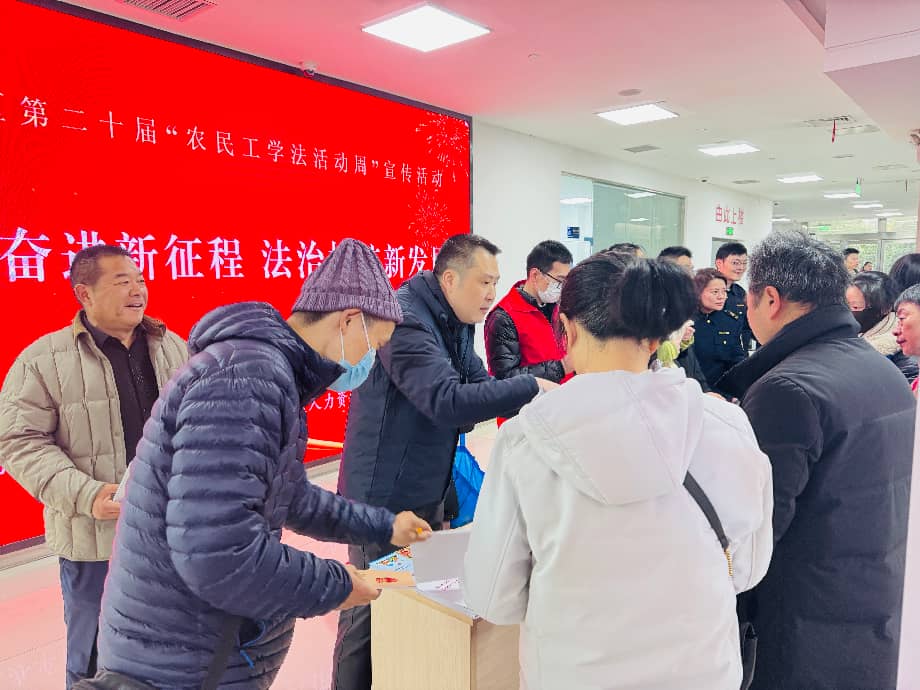 3月3日上午,无锡市滨湖区司法局以“春风送岗元满职场”元宵节招聘会为契机,联合区人社局、区住建局、区交通运输局、区农业农村局和区应急局等多家单位开展的第二十届“农民工学法活动周”主题宣传活动,在滨湖区人力资源中心一楼大厅拉开帷幕。本次活动以“学法奋进新征程 法治护航新发展”为主题,结合农民工拿钱难、保障少、出事没人管、说话不算数等最容易受到侵害的权益,精心设计了一系列贴合实际的宣传内容。