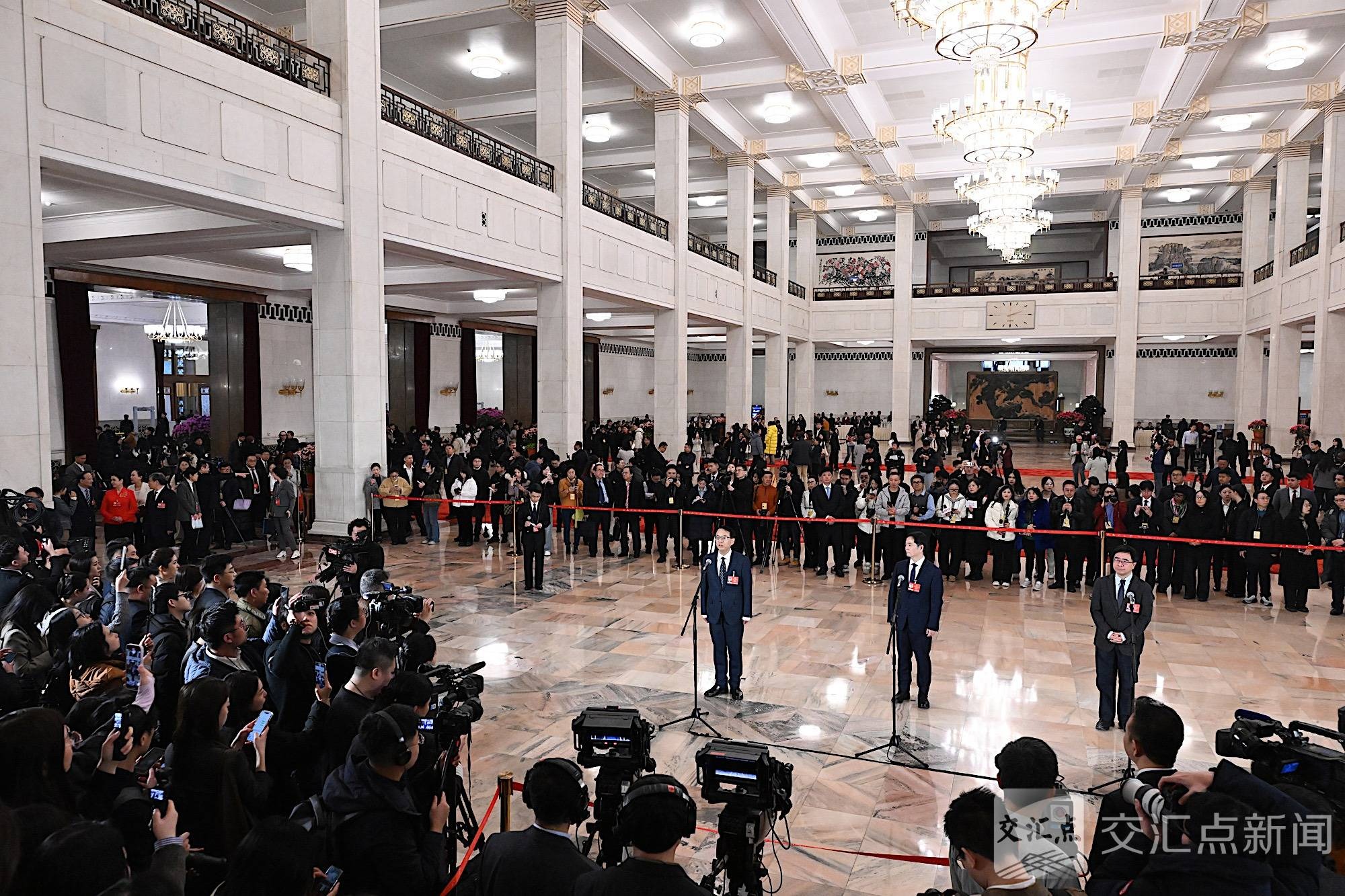 3月4日14时,全国政协十四届四次会议首场“委员通道”集体采访活动在人民大会堂中央大厅北侧举行。