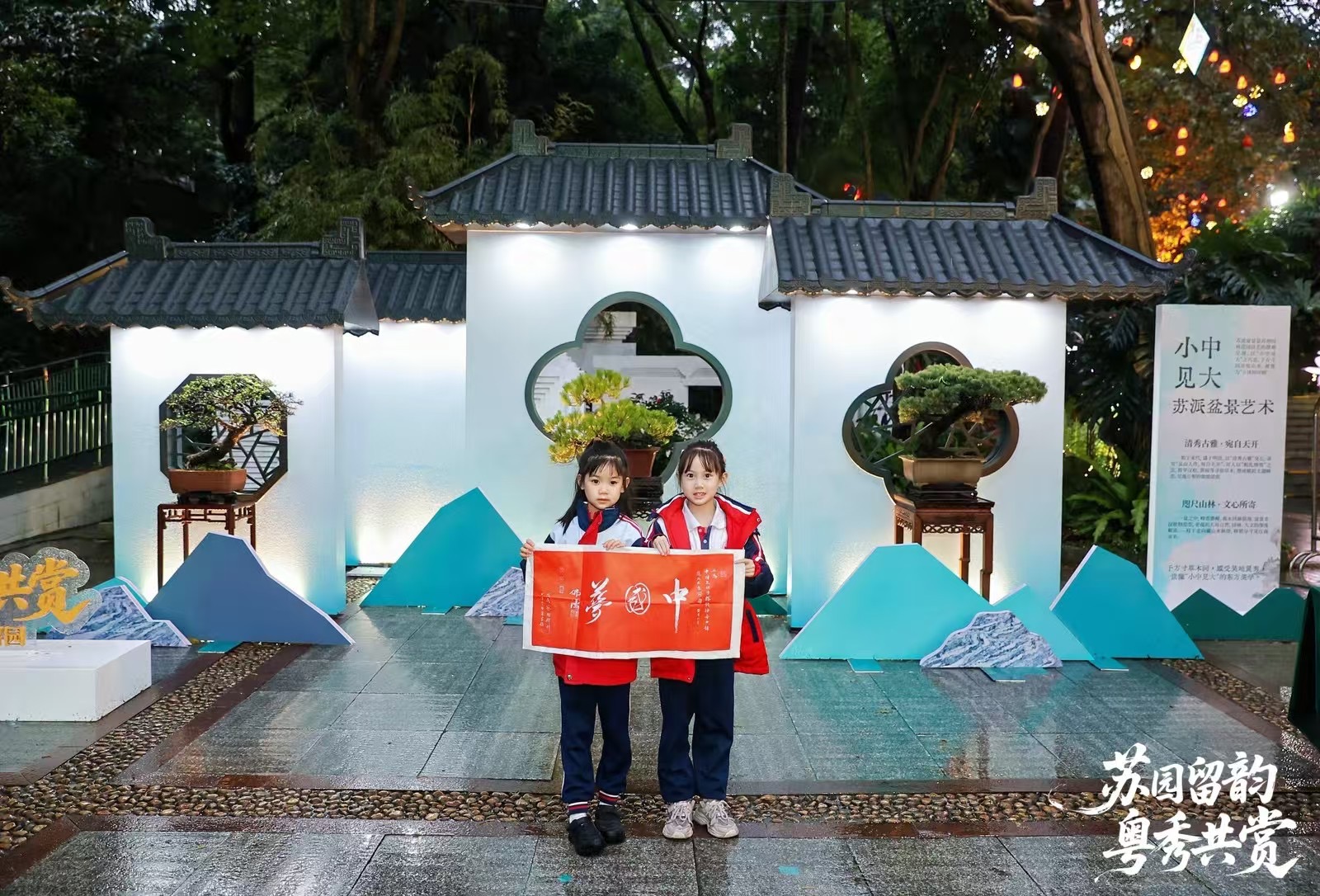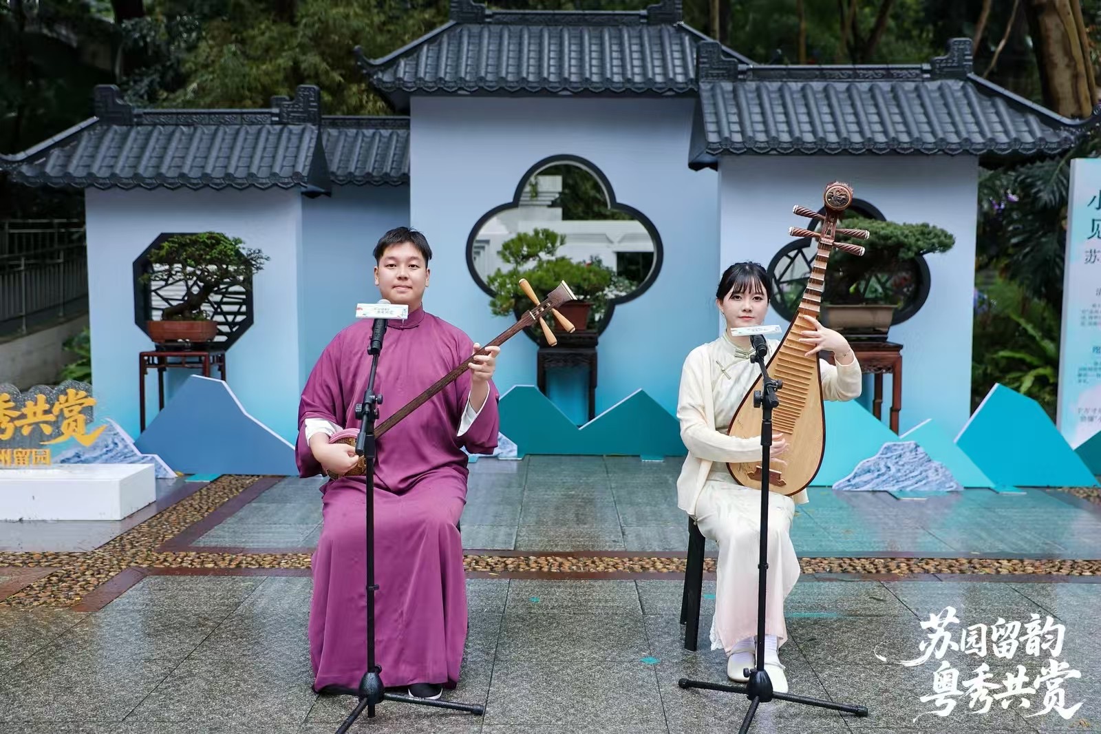 当天下午,活动在苏州评弹的婉转曲韵中拉开帷幕。越秀公园广场上,一组苏式园林造景将粉墙黛瓦、园林花窗、古朴盆景浓缩于一方天地,与越秀山的自然春色相映成趣,仿佛将园林一角移入羊城。