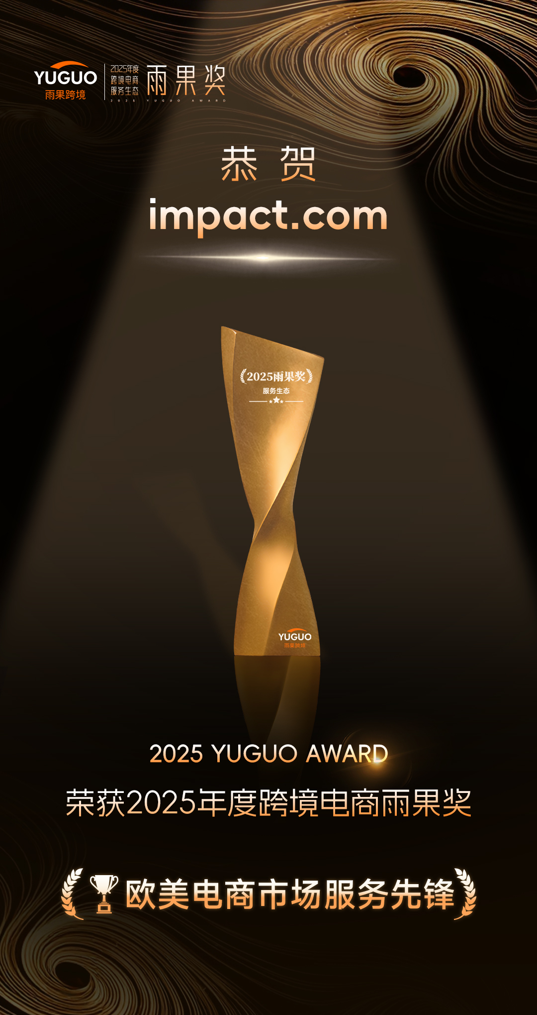 (2026年3月3日,上海讯)近日,在雨果跨境全球平台资源大会上,备受瞩目的2025年度跨境电商雨果奖(服务生态类)颁奖仪式圆满落幕。全球合作伙伴经济核心引擎impact.com凭借在出海领域卓越的服务能力、创新的技术解决方案以及对出海品牌高质量的赋能实践,荣膺“欧美电商市场服务先锋”奖项。