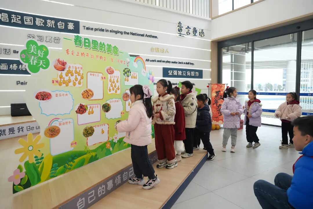 返校日,苏州市平润实验小学校各班级学生代表齐聚门厅,参与“春日C位菜”校园投票,孩子们自主选择最喜欢的菜肴、认真投票,在互动中提升自主参与意识。
