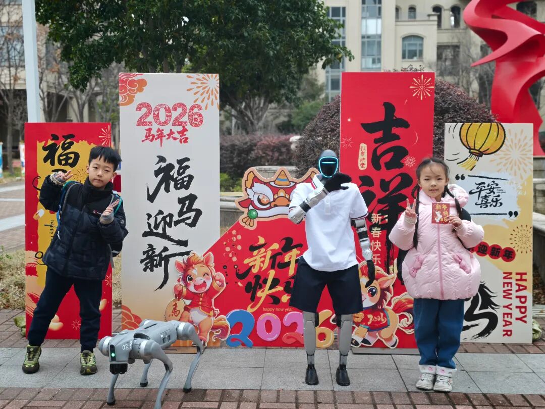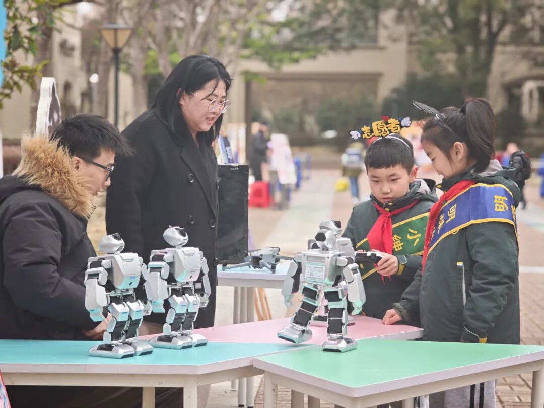 苏州明珠学校将AI科技与传统年俗巧妙融合,机器人灵动互动、无人机精彩亮相,智能设备与同学们趣味交互。
