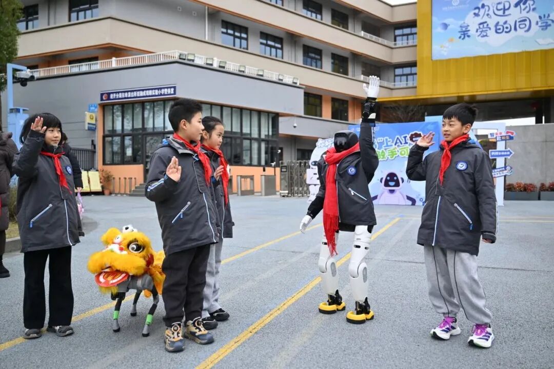 在无锡市扬名中心小学,智能机器人走进课堂,为同学们带来了生动有趣的互动表演。