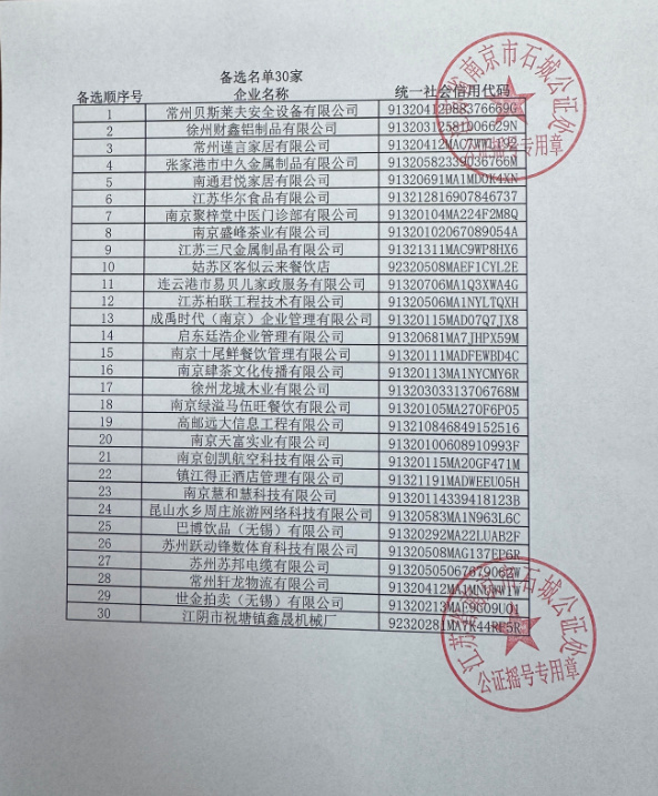 2月27日14时,2026江苏省城市足球联赛(“苏超”)小微企业商务遴选抽签摇号在南京市石城公证处圆满举行。在全程公证监督下,32家拟中选企业、30家备选企业名单现场产生,即日起进入约10天的资格复核与公示环节,最终合作名单将在复核通过后正式公布。