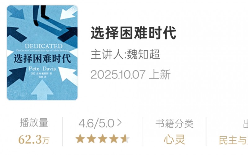 早晚高峰,车来人往,世界喧嚣。而清醒的认知,恰恰可以在这些碎片时间里悄然生长。打开帆书APP,跟随魏知超的深度解读,让这四部社会心理佳作,成为你通勤路上的“认知重启键”。当我们看清那些无形之手的操控轨迹,便能在欲望的洪流中站稳脚跟,在信息的狂潮里守住理性,在无限的选择面前,听见自己内心最真实的声音。