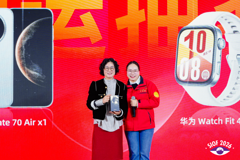 艾视星在发布会现场设置了抽奖环节,送出华为Mate 70 Air手机及华为Watch Fit 4智能手表,将现场氛围推向高潮。同时,为拉近品牌与消费者的距离,展位特别设置了“磨镜片”互动挑战,吸引大量观众踊跃参与,参与者均可领取品牌定制手提袋,活动前十名参与者更可瓜分千元现金奖励。