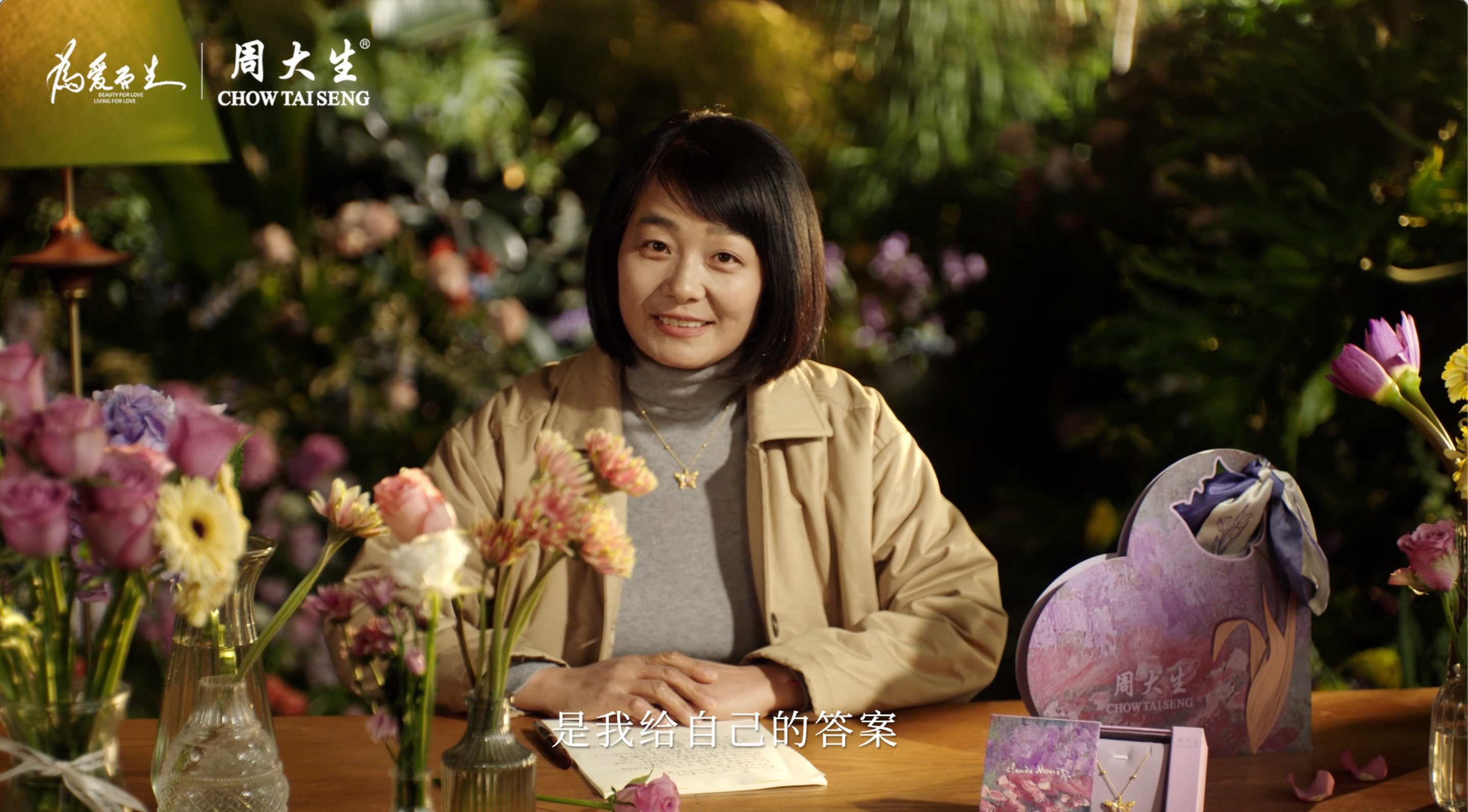在TVC正式发布前,周大生还释放出一支采访片。通过问答的形式和陈慧聊作品、聊生活、聊感悟。自洽,是她反复强调的观点。陈慧此前也表达过:“很多人觉得出走是觉醒,离婚是觉醒,我认为真正的觉醒是看清自己。”在采访片中她也说到:“无法改变大环境时,应该向内求。像棵小草,只要有缝隙,它都会发芽”。这份不内耗、不迎合、从容生长的自洽,也正是品牌想在本次三八妇女节想传递的态度。
