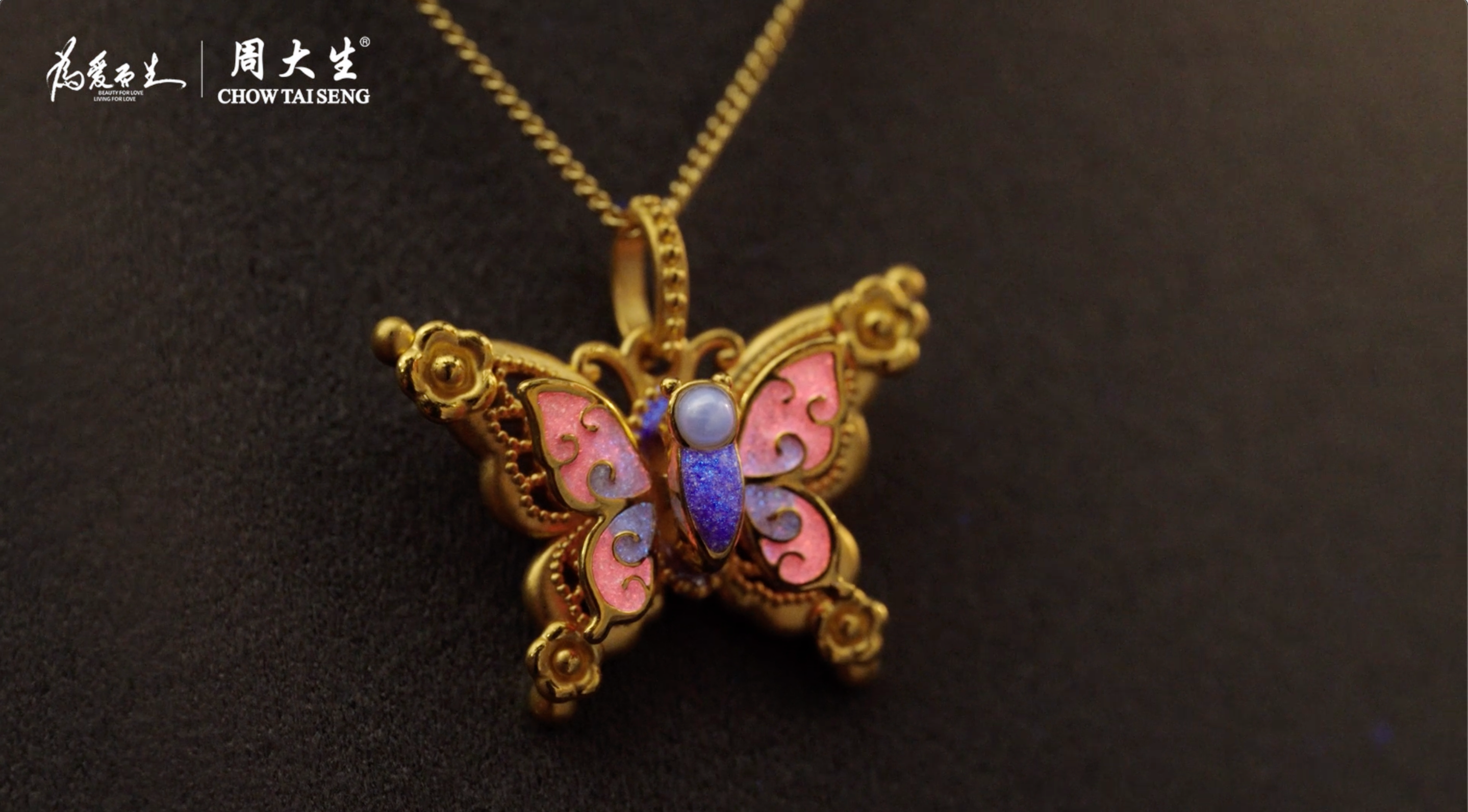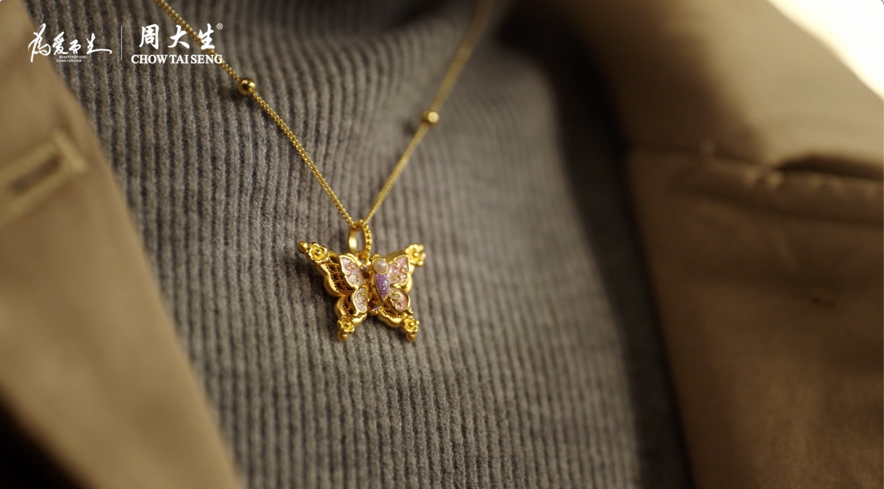 在TVC的结尾,周大生“心动蝶舞”系列自然融入画面。这一系列是周大生与莫奈IP的联名作品,将印象派大师莫奈的浪漫美学融入珠宝设计。