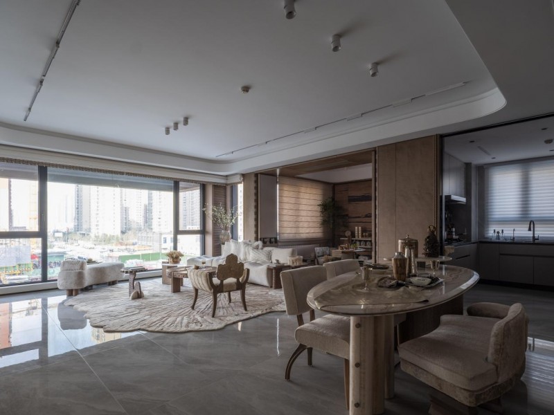 建面约105㎡户型,4.8米宽厅。一位年轻妈妈说:“我儿子三岁,最喜欢在客厅跑来跑去。以前住的房子,客厅小,他跑两步就到头了。这个客厅,够他折腾。”