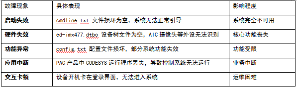 长期以来,标准Raspberry Pi OS及其他通用Linux发行版在用户现场面临一个严峻且普遍的技术挑战:异常断电等意外情况可能导致文件系统损坏,进而引发一系列系统故障。根据我们在实际项目中的统计和反馈,这类问题主要表现为:
