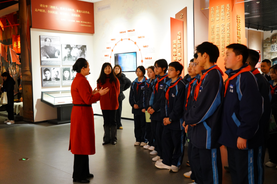 随后,师生们走进中国共产党湖南历史展览馆,开启沉浸式党史学习之旅。馆内丰富的历史文物、详实的文字记载、生动的场景还原,系统展现了湖南人民在中国共产党领导下的奋斗历程与辉煌成就。师生们认真聆听讲解,不时驻足交流、记录感悟,在历史的回响中深刻体会伟大建党精神,感受湖湘儿女的家国情怀与使命担当,从百年党史中汲取砥砺前行的精神力量。