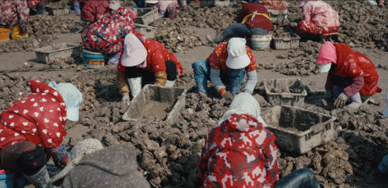 在乳山牡蛎加工线上,有一群平均年龄超过五十岁的女工。她们每天都会用左手稳住牡蛎,右手挥斧精准劈入壳缝,每人每天处理约一千斤,斧头起落上万次。短片中的牡蛎养殖加工厂厂长肖振秀女士从2009年入行,最开始从上苗养殖做起,逐步摸通加工、分拣、电商发货全部环节。2012年梅花台风袭来,四五十台养殖架一夜倾覆,损失二三十万斤。但她没有止步,修复设施、补充流动资金。她说:“把品质稳住了,品牌才能打出去。而这个时候,别人会记得的是你的名字,而不是你的性别。”