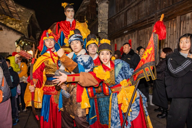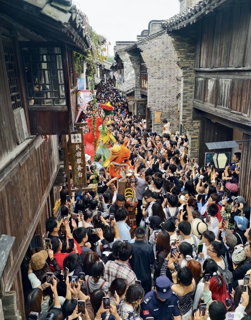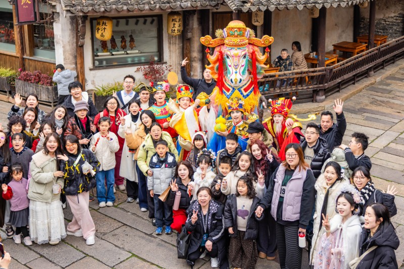 无观戏公司主理人白宇希表示:团队的核心设计理念是进行“文化转译”——将古籍中的本土守护神转化为可互动、可打卡的活体符号。据其介绍,正是凭借这一套轻量化的本土英雄谱系,配合行进式巡游,乌镇景区在春节期间24小时客流,直接冲入全省景区接待量前三。在她看来,相比于横店影视IP的宏大造景或西塘的年俗堆砌,这种具有“在地属性”的定制造型,往往能以更轻的投入撬动更高的流量溢价。