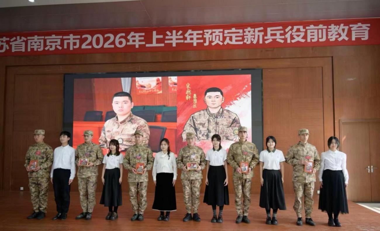 诗朗诵、手语操、原创手绘肖像……3月8日下午,一场以“青春如火·强军有我”为主题的特别活动,在南京市学生国防教育基地开展,现场气氛温馨而热烈。来自南京市2026上半年预定新兵役前教育集训队的500名预定新兵代表,与南京林业大学家居与工业设计学院的30名学子齐聚一堂,在军绿与青春的对话中,共同完成了一场关于家国情怀的“双向奔赴”。