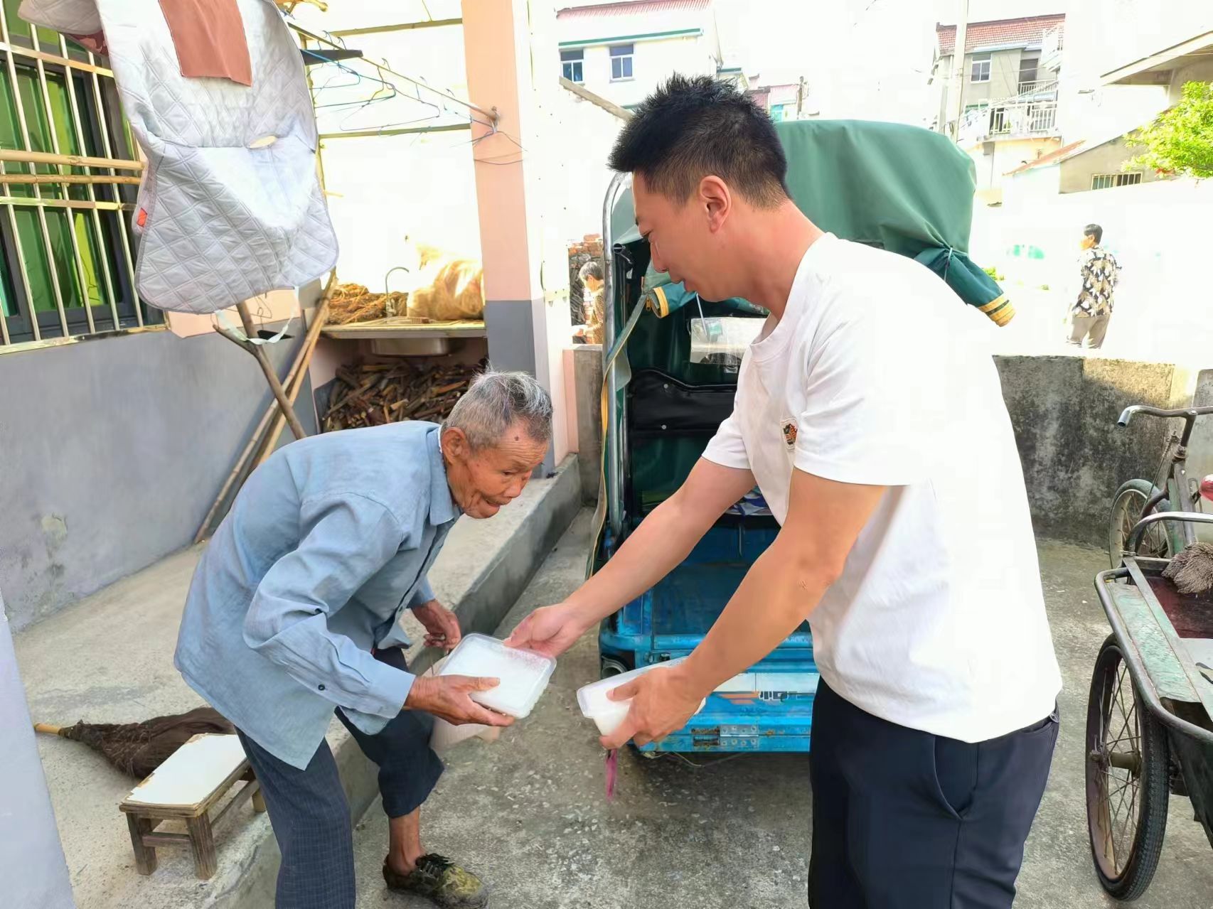 新港村紧盯“一老一小”民生痛点,将移风易俗与全周期民生关爱服务深度融合,让文明新风在暖心举措中落地生根。党员干部化身“红色管家”,主动敲开独居老人家门、走进留守儿童课堂,2024年以来累计走访服务300余人次,把送餐上门、就医帮扶、课业辅导等贴心服务送到群众心坎上。“每天都有热乎的早餐,腿脚不方便还有人送上门,村里把我们照顾得太周到了。”高龄独居老人高人文捧着免费早餐,笑容满溢。