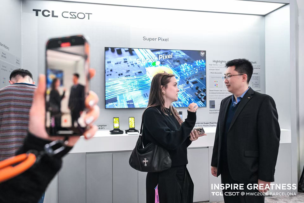 [西班牙,巴塞罗那,2026年3月2日]2026世界移动通信大会(MWC2026)在巴塞罗那国际会展中心举行,TCL华星携面向AI Phone、AI PC等新一代智能终端的多项前沿显示技术与应用方案亮相,以Super Pixel超级像素与印刷OLED两大核心技术为代表,集中展示其在高画质、低功耗、护眼显示及新型显示技术等领域的最新成果。
