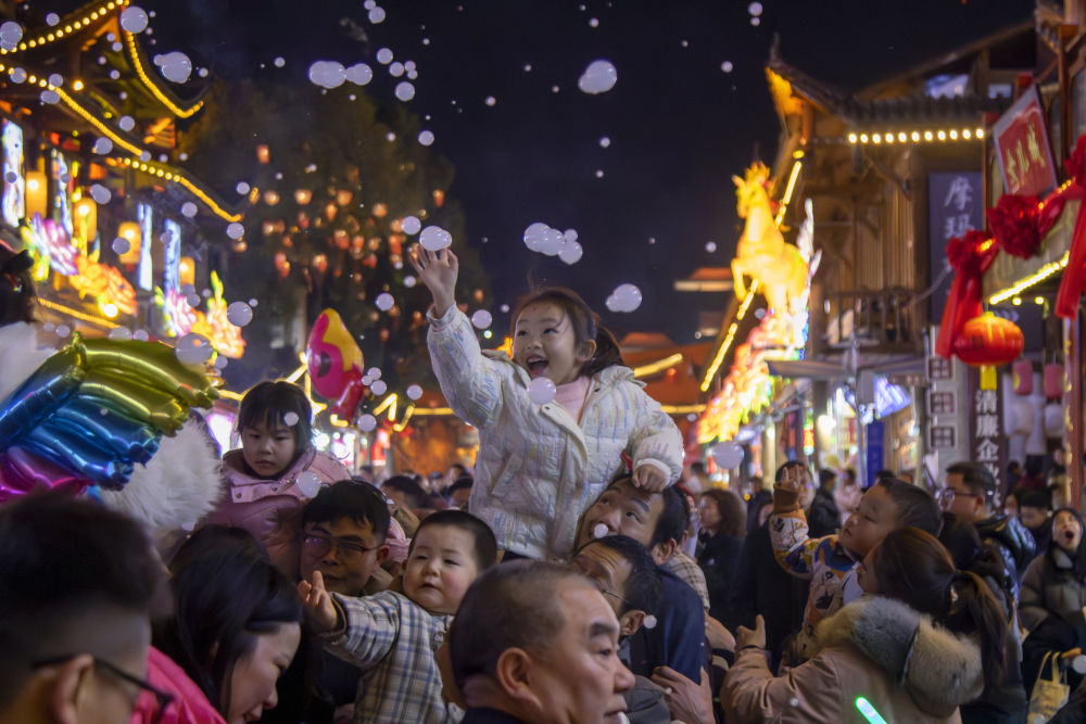 2026年2月13日,湖北省恩施女儿城步行街区人流如织。新华社发(谭华 摄)