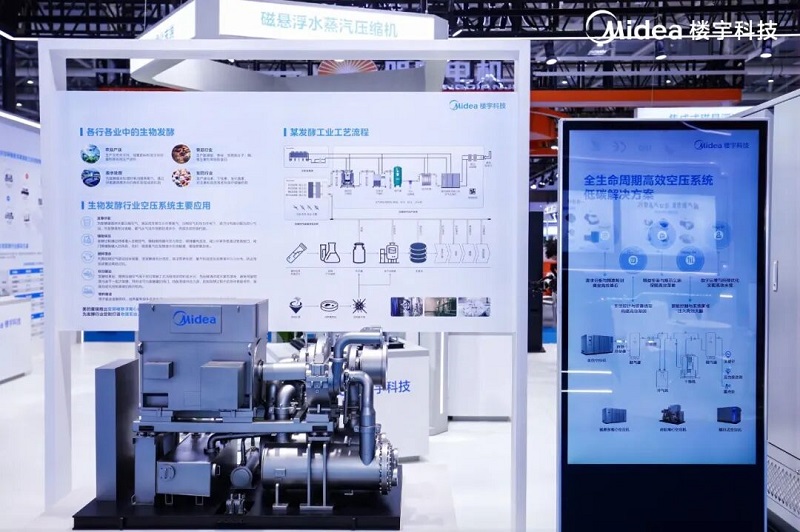 在产品布局上,美的聚焦发酵行业核心用能需求,推出全系列高效节能产品。制冷环节的自研磁悬浮离心式集成冷水机组,满足国家双一级能效要求;压缩空气环节的100%无油磁悬浮离心式空压机组,保障气源洁净度的同时实现高效节能;供热环节的磁悬浮水蒸汽压缩机、超高温双级离心热泵、变频中高温螺杆热泵等产品,可以完美覆盖不同温度需求的工艺场景,实现能源高效利用。这些产品并非简单堆砌,而是根据客户实际用冷、用热、用气需求进行非标定制,形成协同效应,最大化提升场景能效,打破了传统标准化设备难以适配复杂发酵场景的局限。