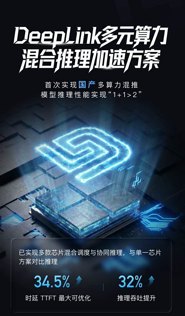 实际应用中,天数智芯芯片与DeepLink混推方案的融合,充分发挥其在算力、访存密集型任务中的优势。千卡规模集群实测显示,搭载天数智芯芯片的异构集群,在多模态生成、高并发服务等场景中推理时延优化显著,科学论文处理等任务中吞吐性能大幅提升,与其他国产芯片协同实现“1+1>2”的效能跃升,既验证了天数智芯通用GPU芯片的高性能与兼容性,也彰显了DeepLink生态的协同潜力。