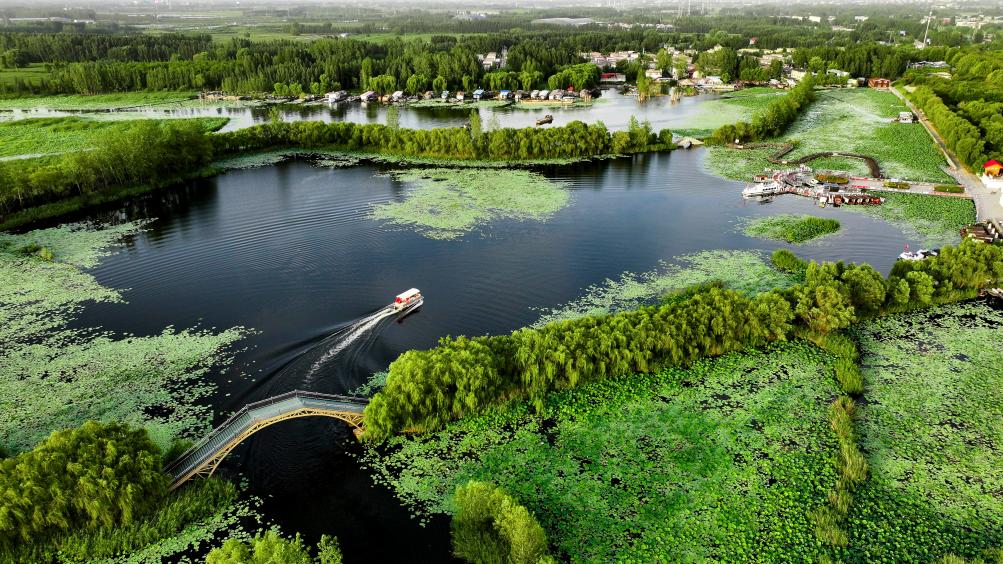 这是山东省济宁市微山县微山湖二级坝湿地公园景色(2024年8月13日摄)。新华社记者 郭绪雷 摄
