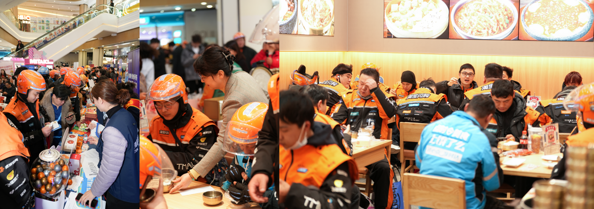 来自淘宝闪购、美团、京东等平台的30名外卖员、快递员代表受邀参加“平时你给我送餐,今日我请你吃饭”关爱新市民暖心行动。