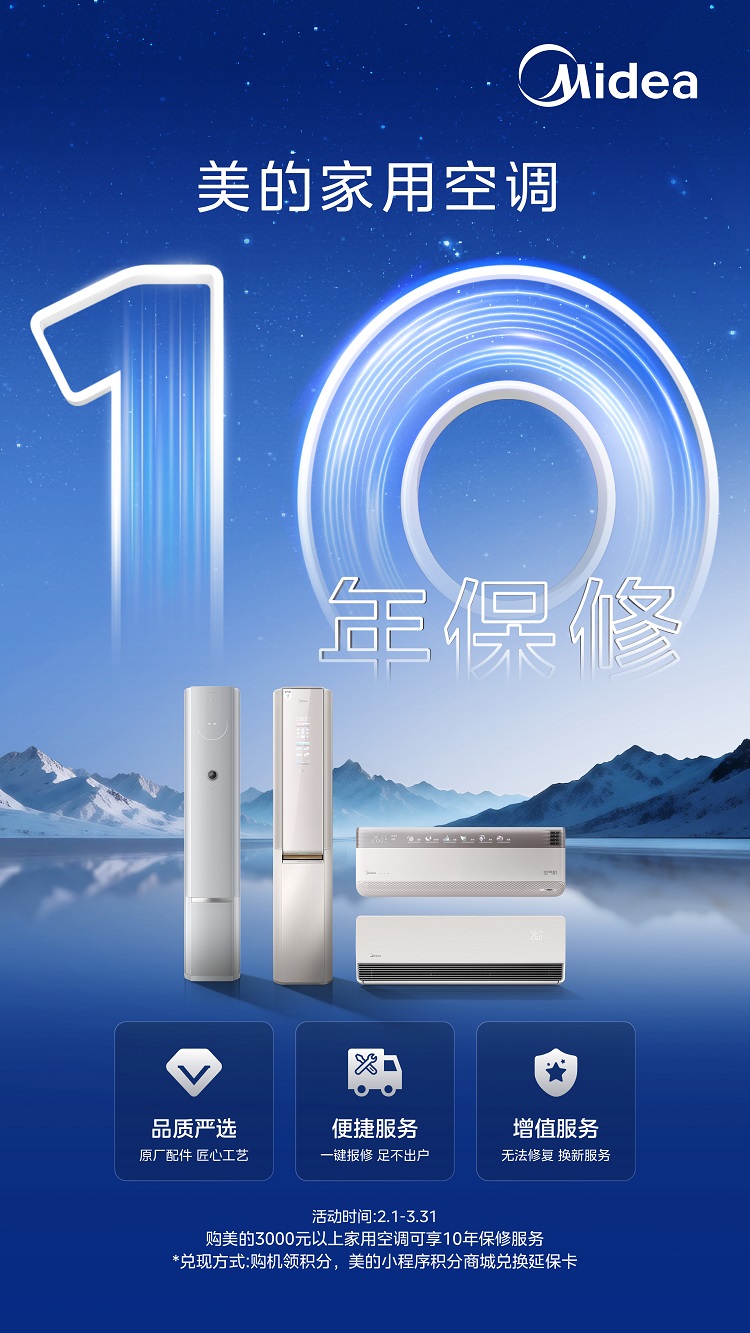 此外,凡购3000元以上家用空调,即可享受10年整机全免费保修,覆盖核心部件与全流程服务,美的此举相当于为空调提供长期保障,彻底解决用户售后顾虑,把质量安心写进承诺里。