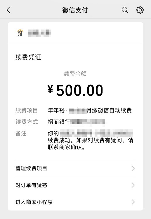 除了提醒到位,腾讯微保在后续的操作体验上也十分顺畅。当用户收到“扣费失败”或“续保提醒”的消息时,直接点击消息卡片,即可一键跳转到腾讯微保小程序的缴费页面。用户无需下载额外的APP,也无需繁琐的登录操作,在微信生态内即可完成支付、修改扣费银行卡账号或调整续保设置。