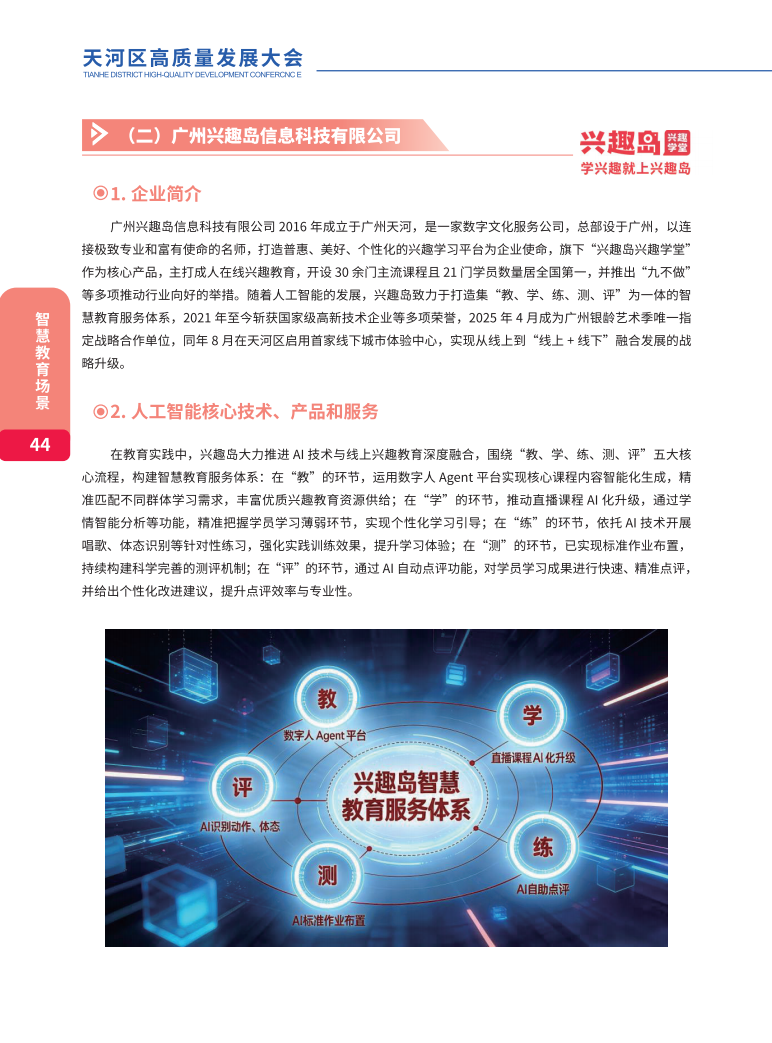 这套实践体系,正是智能经济赋能实体经济智能化的生动体现。凭借AI赋能的智慧教育场景,兴趣岛成功入选天河区“两业融合”人工智能场景应用优秀案例,成为天河数字文化产业与智慧教育领域的代表,亮相2026年广州市天河区高质量发展大会。