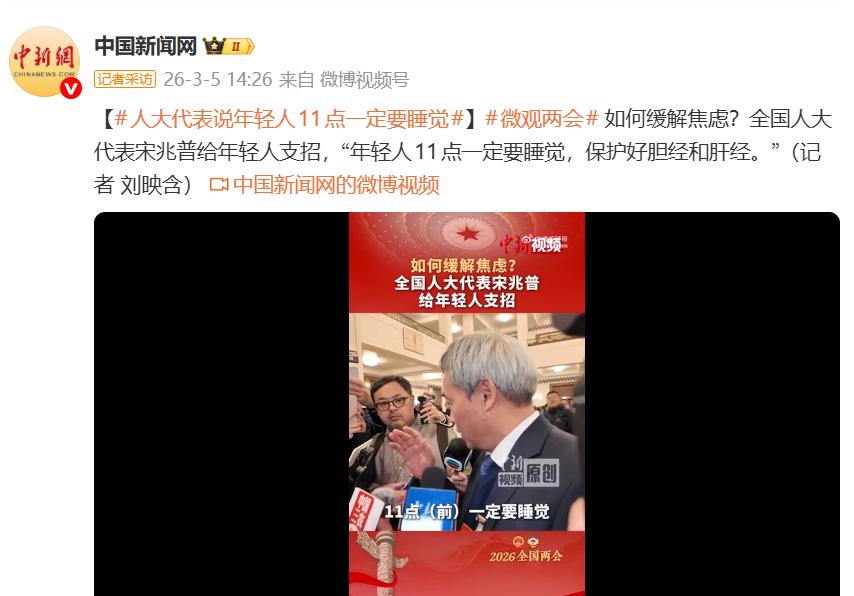近日,全国人大代表宋兆普给年轻人缓解焦虑支的招——“年轻人(晚上)11点一定要睡觉,保护好胆经和肝经。”冲上热搜。