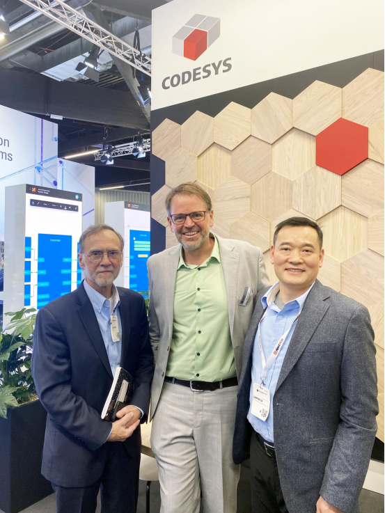 同时,上海晶珩总经理Austin、国际营销顾问Randall与CODESYS CTO Hilmar也进行了深入交谈,进一步增强了我们合作的关系。活动期间分享的激情和愿景非常鼓舞人心。下面的照片完美地捕捉了我们合作的精髓——它建立在信任、创新和共同成长的基础上。