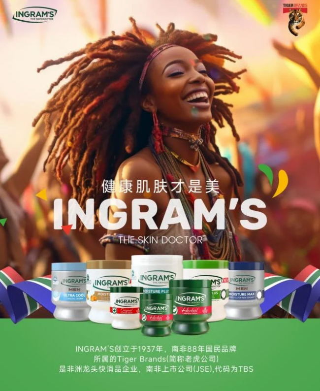 作为南非上市公司Tiger Brands旗下品牌,其经历了从本土口碑积累到国外渠道铺设的渐进过程。在南非本土,INGRAM'S凭借对“干痒裂”问题的针对性解决方案,成为药店和超市货架上的常青产品。