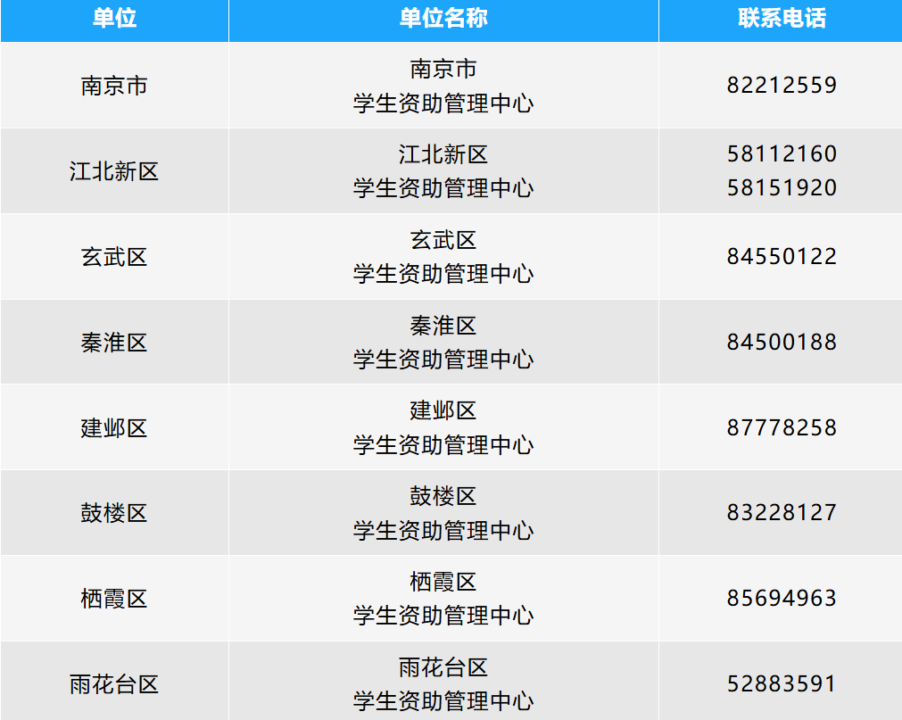 南京市学生资助管理机构联系方式