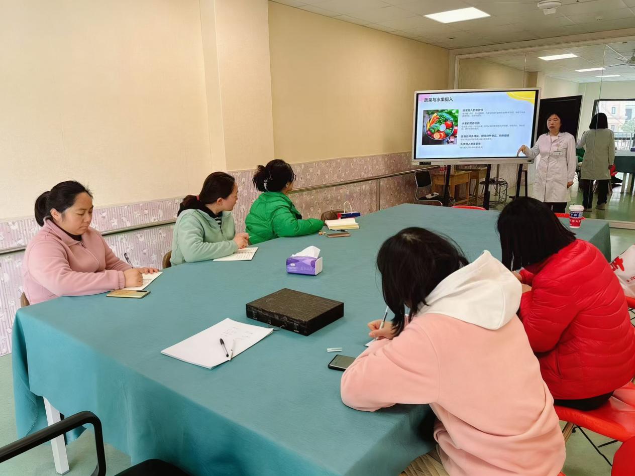 3月10日下午,南京建邺区莲花社区服务中心医生李爽,来到青润育儿园,为老师和保育员们讲解小月龄宝宝的辅食添加,以及春季常见疾病的预防与护理。“李主任,我们班有个一岁多的娃口水多、不爱发音,是什么原因?”“有个2岁多的宝宝,家长想给她脱掉尿不湿,什么时候‘戒’纸尿裤时机最好?”讲座结束后,老师们仍然意犹未尽,围着李爽请教。